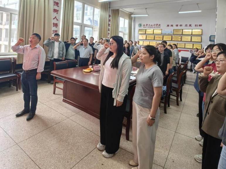 会议首先由退休教师代表李建民教授带领全体教师诵读人民教师誓词。重温从教宣言,牢记从教准则,坚守理想信念,担当责任使命,静心教书、潜心育人,努力成为一名党和人民满意的好教师。铿锵的誓言,是每一位教师的自我期许,更是对教育强国使命的庄严承诺。